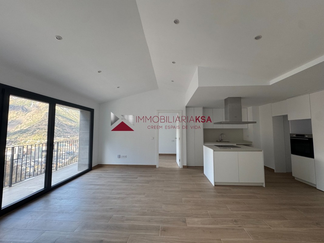El pis disposa de tres habitacions exteriors, perfectes tant per a família com per a despatx o habitació de convidats. La zona de dia és àmplia i lluminosa, amb grans finestrals que permeten gaudir de sol directe i d´unes vistes obertes privilegiades al´entorn natural. La sensació d'amplitud i de tranquil·litat és un dels seus punts forts.