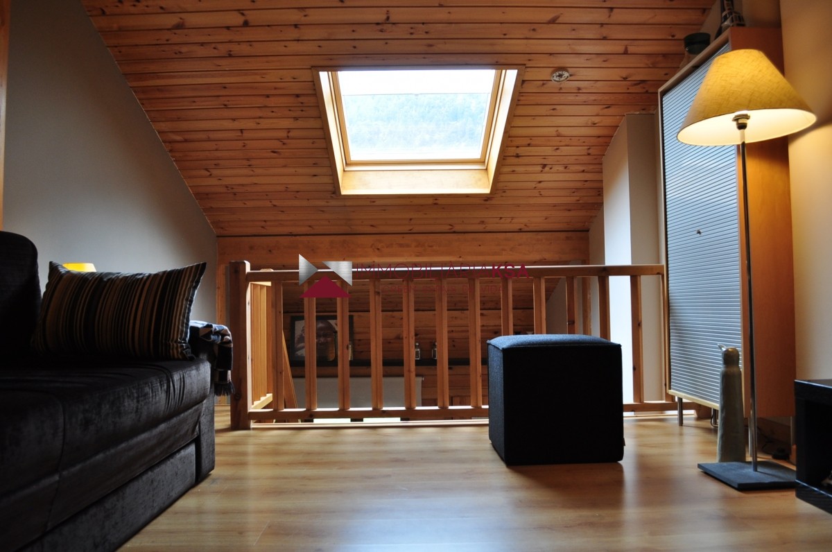 Cozy and warm duplex apartment located in a quiet area surrounded by nature, 1 double bedroom and 1 bathroom, opened and equipped kitchen with dining area and living room. 2 parking places and storage room included in price.