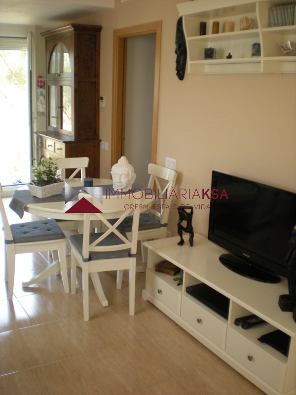 Living room with table for four or six people, furniture, sofa - bed 3 seater, TV, DVD