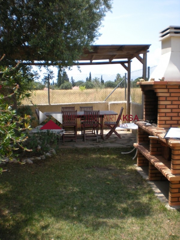 Private garden of 64 m2, dining area with stone terrace with wooden pergola and barbecue for 6 people