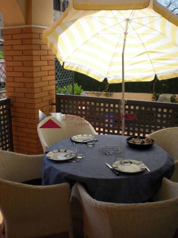 Private terrace with access to the front door of the apartment and the communal swimming pool.
